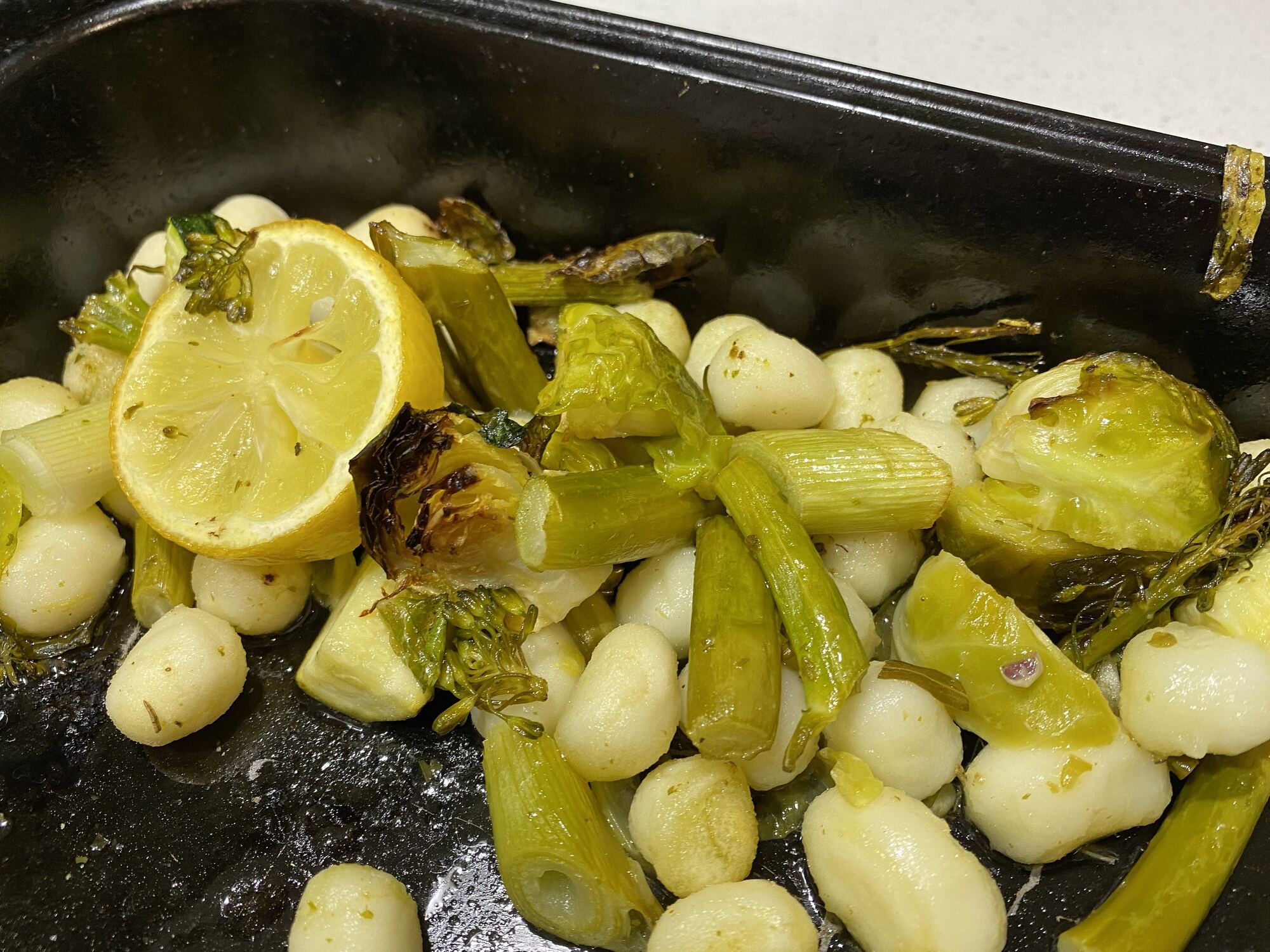 Add the remaining half of lemon juice, to olive oil, salt and pepper and basil leaves to jug